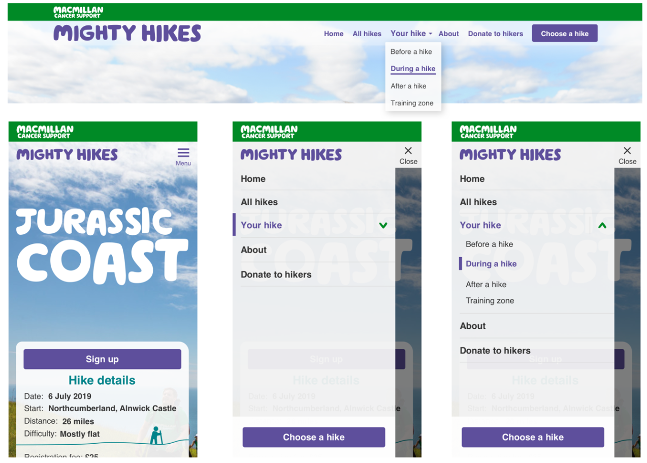 The digital experience supporting Mighty Hikes needed to make it easy for users to: